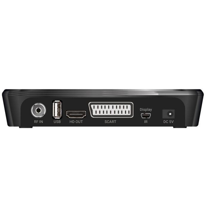 Zemaljski DVB - T2 / C prijemnik, chipset GX6702, H.265 / HEVC, flash memorija 64 MB, RAM 1 GD DDR3, prednji LED panel, 4:3 / 16:9 omjer slike, PVR mogućnost snimanja, Media Player ( MKV, AVI, MPEG, TS, VOB, MP3, JPEG Playback ), HDMI, USB, Scart , napajanje 5 V DC / 1A adapter