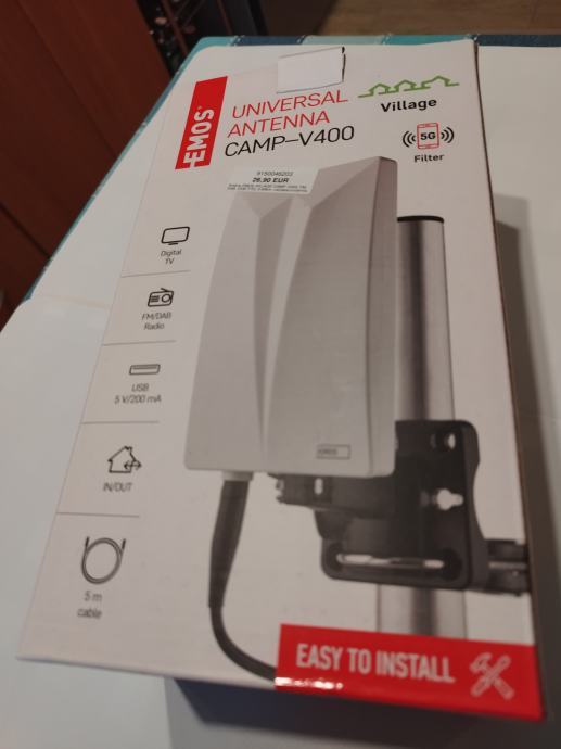 Antena EMOS VILLAGE CAMP–V400, FM, DAB, DVB-T/T2, 0-80km, vanjska/unutarnja, aktivna, filter LTE/4G/5G