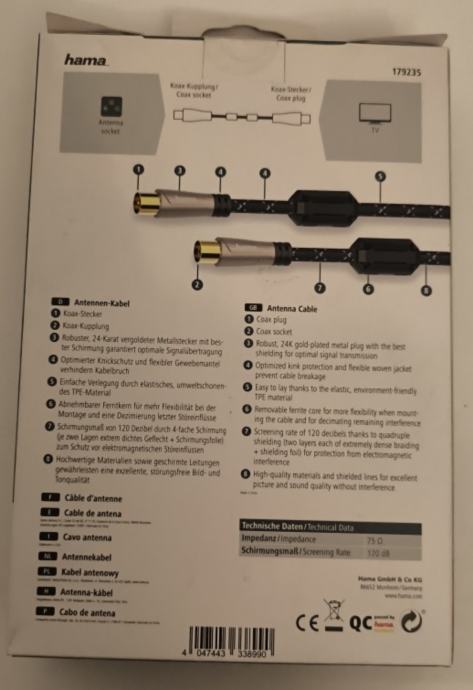 Novi HAMA antenski kabel, 120 dB, 1,5 m,