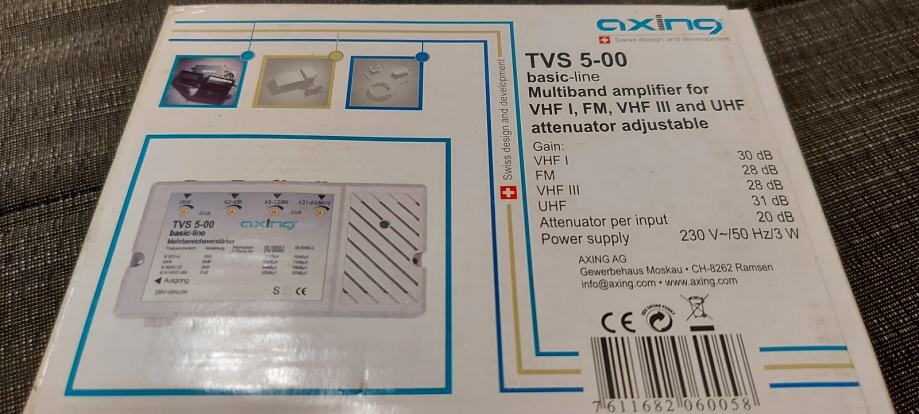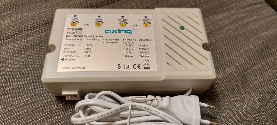 Prodajem novo antensko - tv pojačalo Axing TVS 00500 Multiband amplifier FM 30 dB.