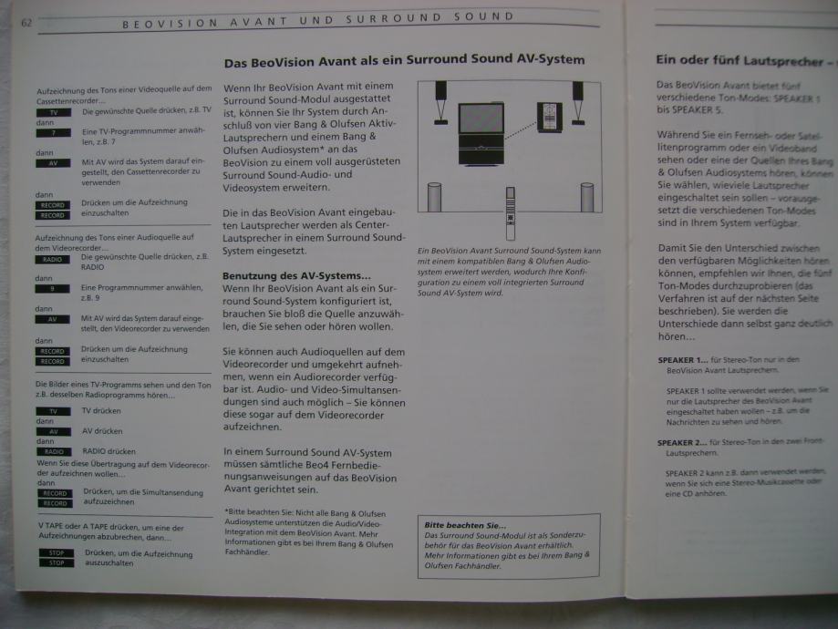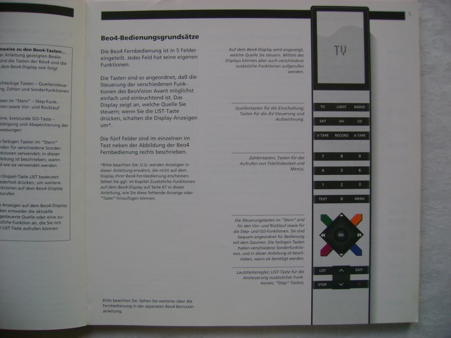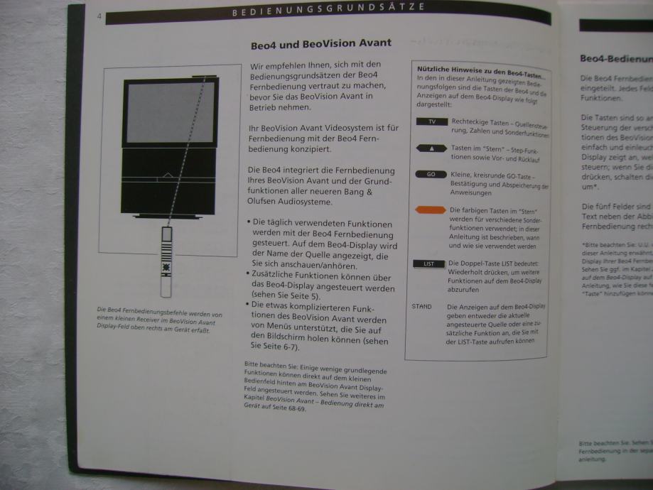 Bang & Olufsen - Beovision Avant - uputstvo na njemačkom jeziku, 21 x 21 cm, 72 stranice, ilustrirano, stanje je vidljivo na slici.