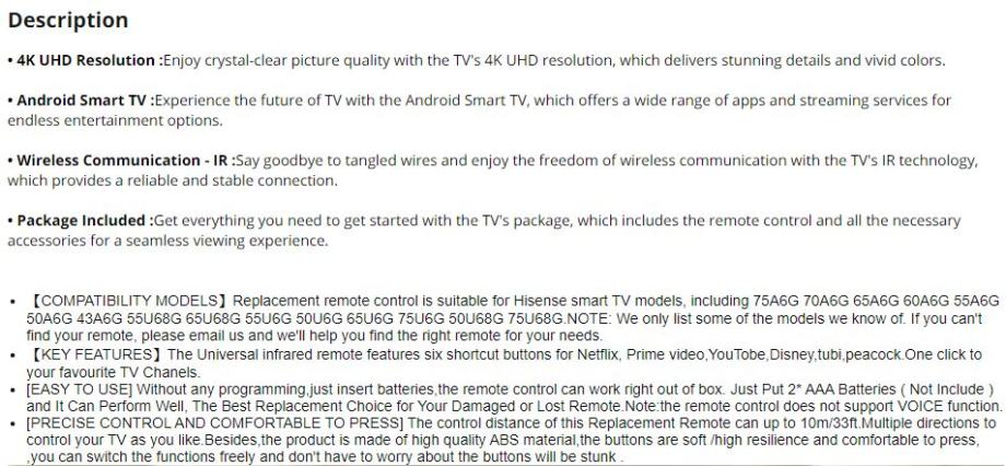 Daljinski Hisense ERF3J80H RC Remote Control Smart LCD TV 4K Replacement