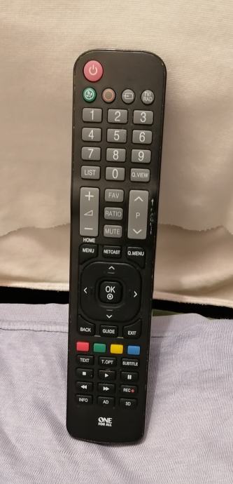 Upute: TV se uključi, drži se crveni i plavi gumb istovremeno dok ne zasvijetli dvaput crvena led, i ugasi se tv, onda je spreman za korištenje.