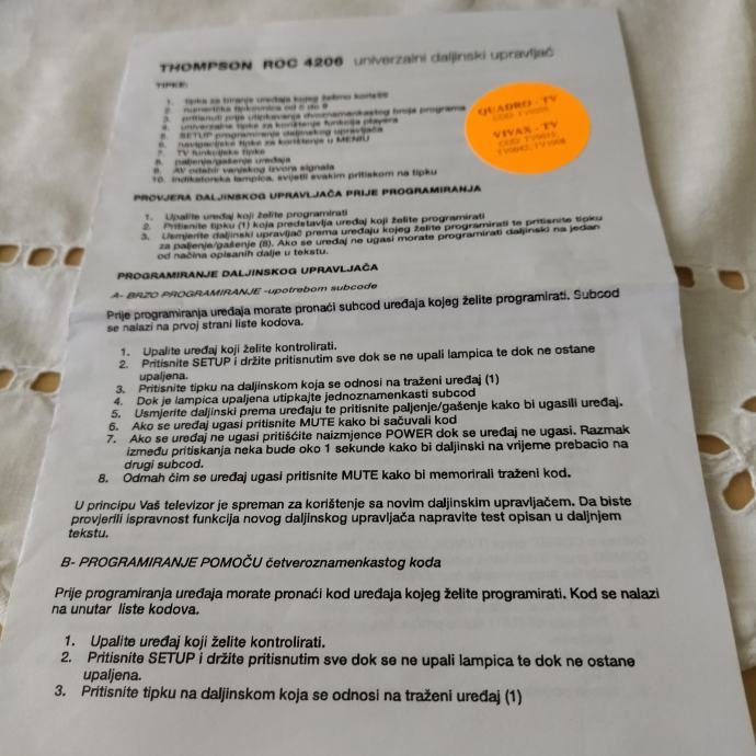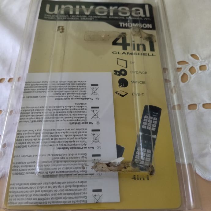 Univerzalni daljinski upravljač,ne upotrebljavana,za TV,DVD/VCR,SAT/CBL,DVB-T,sa baterijama,uputstvom.Šaljem isključivo Tiskom/3 EUR uz prethodnu uplatu.