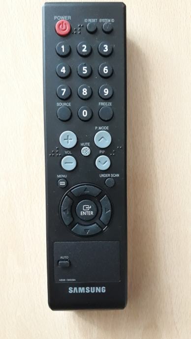 Prodajem rabljeni, očuvan, ispravan daljinski upravljač SAMSUNG ( tip AB59-00039A ) za sigurnosni tv monitor SMT 1930 . Vidi u prilogu slike. Poljanice Gornja Dubrava Zagreb