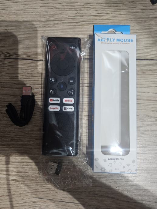 - dodatne funkcije: airmouse za navigiranje uređajima putem kursora na ekranu i pokretima daljinskog, funkcija učenja tipki od drugih daljinskih upravljača, glasovne naredbe, ugrađena punjiva batrija (kabel za punjenje je priložen).
