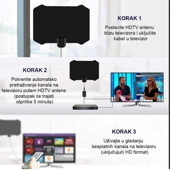 Digitalna TV antena, DVB-T2, Full HDTV, HEVC-H.265, sobna antena, Novo