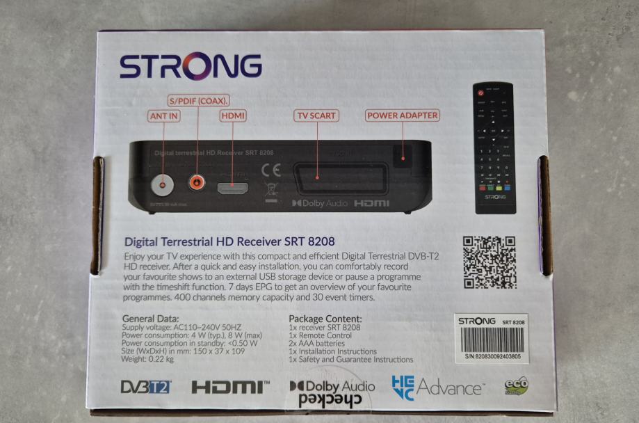 dvb, dvbt, dvbt2, tuner, strong, Strong SRT 8208, hr, hrvatski, daljinski, tv, hevc, usb