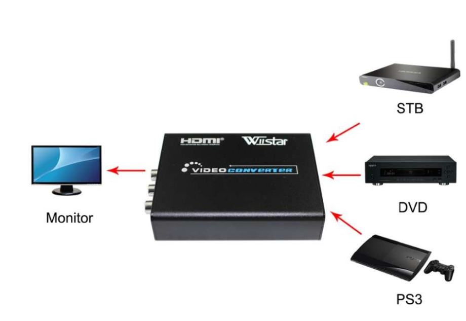 -Device Type: HDMI to 3RCA + Audio + Composite/S-video Converter