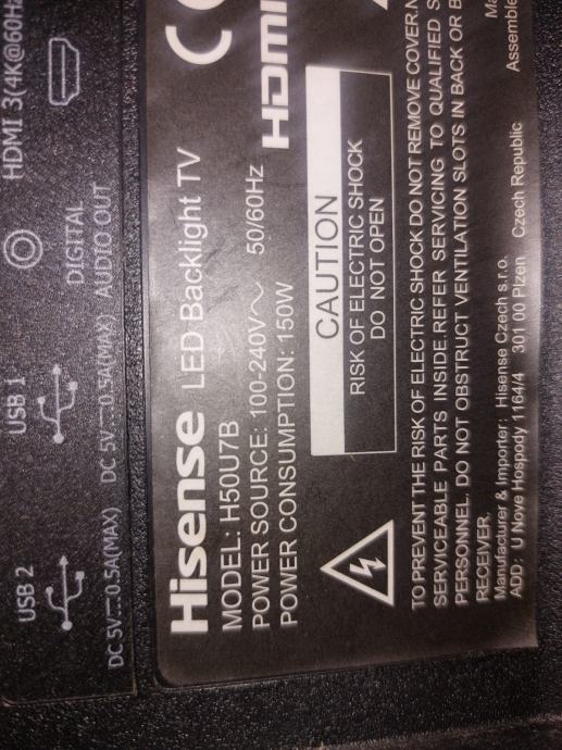 Hisense led tv, model: H50U7B, ima daljinski, sa razbijenim ekranom za dijelove prodajem.