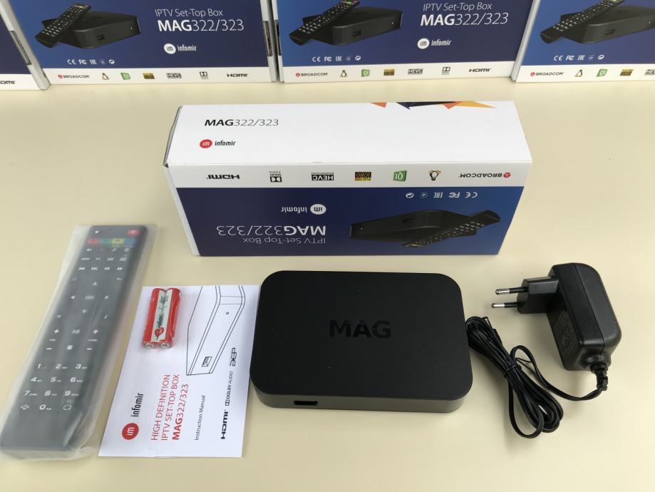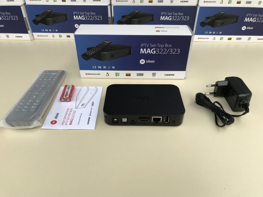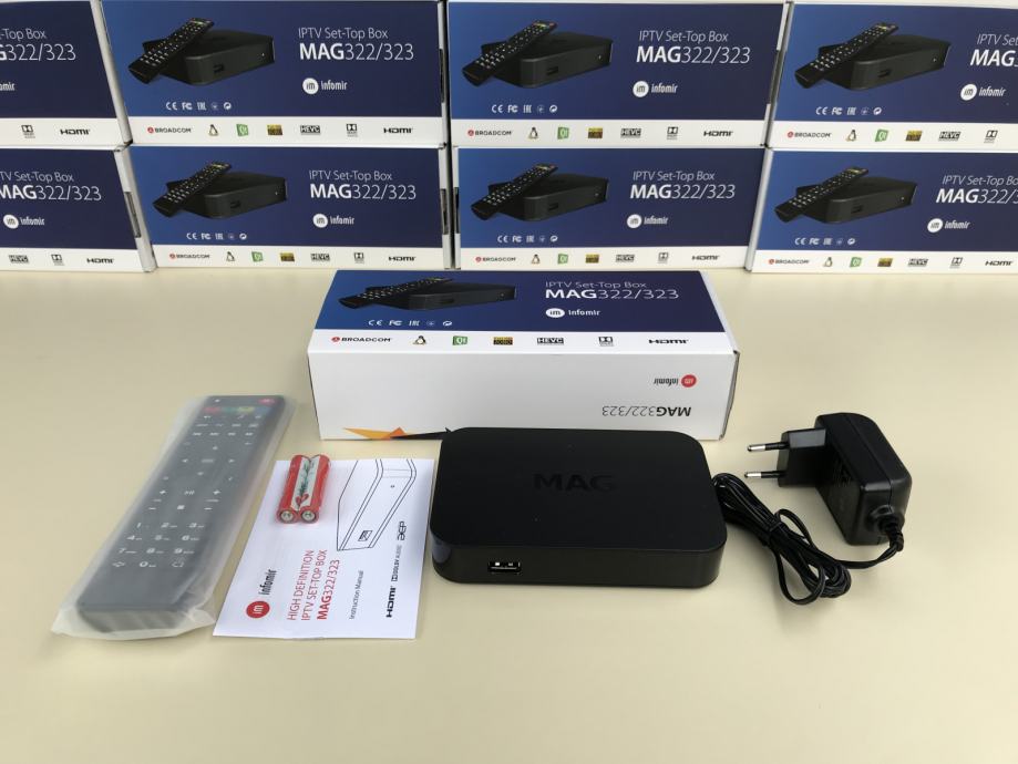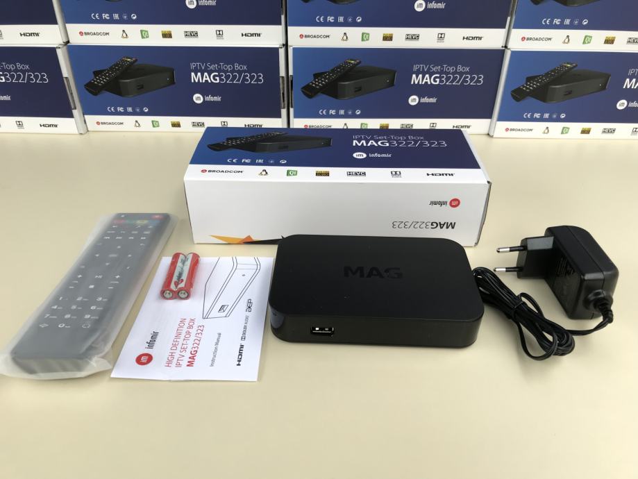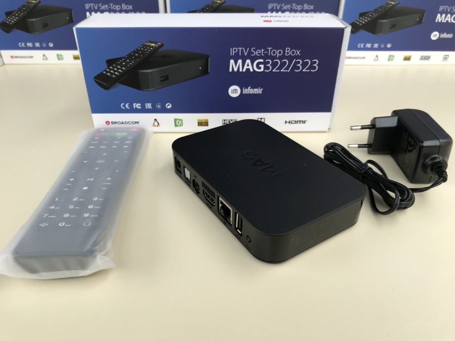 Na prodaju novi modeli MAG iptv Set Top Box uredjaja. Mag 322/323 je pobiljsan model cuvenog 254/255 modela. Za razliku od prethodnika 322/323 ima brzi Broadcom procesor, vise rama, podrsku za 4K i HEVC H.265 format, Linux 3.3 operativni sistem i jos mnogo toga. Set-top box MAG-322/323 je multimedijalni uredjaj koji najvecu primeni ima u oblasti IPTV. Takodje, sa ovim uredjajem mozete strimovati sve moguce stvari sa interneta i u kucnoj mrezi.