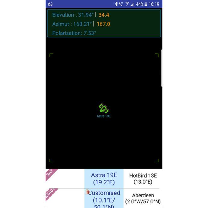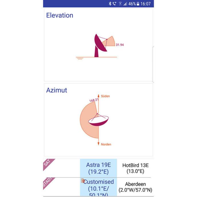 Aplikacija vam omogućuje jednostavno grafičko poravnanje antene. Držite svoj Android pametni telefon uz stražnju stranu antene. Okrećite i naginjite antenu dok se oba simbola satelita ne poravnaju. Sada je potrebno samo nekoliko finih podešavanja. Za Apple uređaje možete poravnati svoj pametni telefon s LNB krakom.