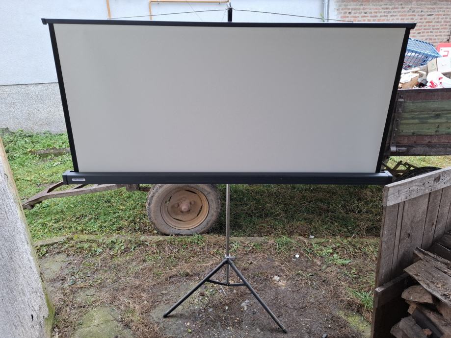Prodajem rabljeno platno za projektor Projecta na praktičnom stalku, idealno za kućne projekcije ili prezentacije. Platno je u dobrom stanju/neoštečeno s crnim okvirom i stabilnim tronošcem koji omogućuje lako postavljanje.