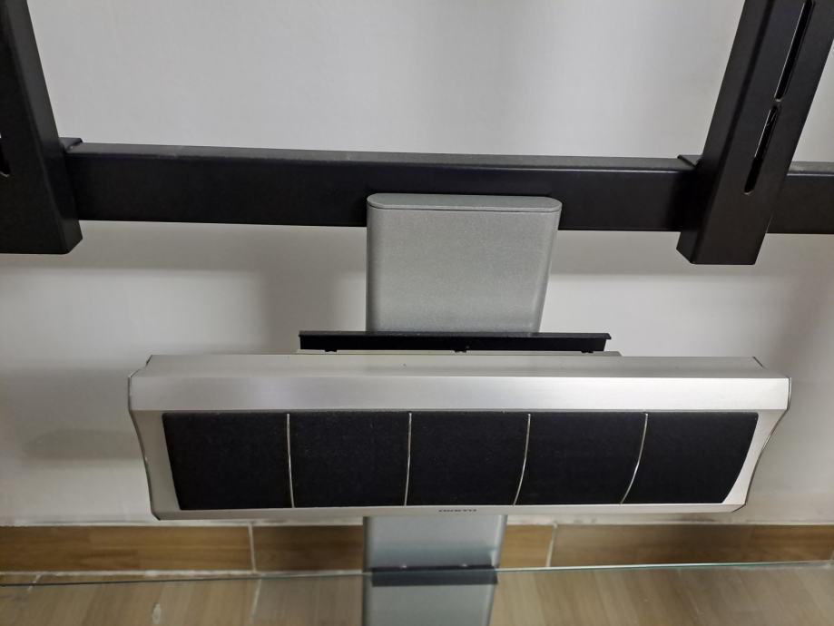 Stalak dolazi uz 3 Onkyo zvučnika visine 51×14cm koji se nalaze svake strane i jedan ispod TV-a .