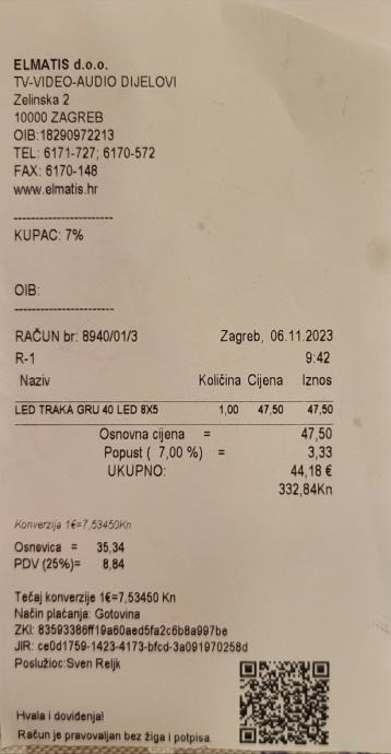 Preporučam samo osobno preuzimanje zbog osjetljivosti LED dioda.
