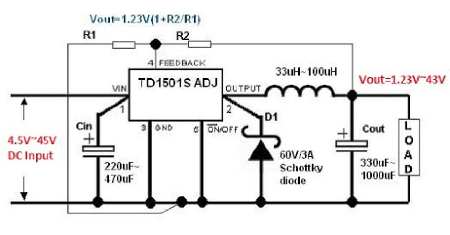 Prodaje se više komada step down convertera TD1501LADJ, izlazni napon se može regulirati kombinacijom otpora.