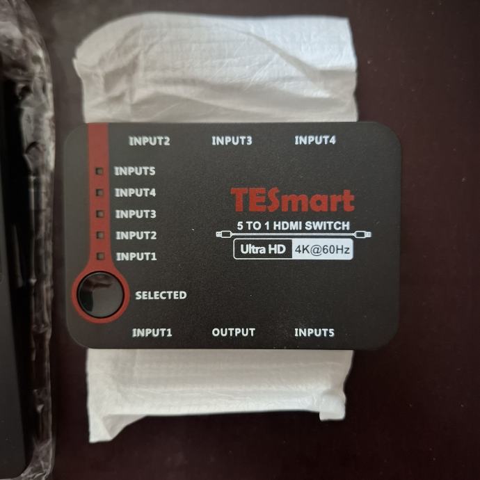 Ovo je TESmart 5-u-1 HDMI preklopnik (switch) s nekoliko ključnih značajki: