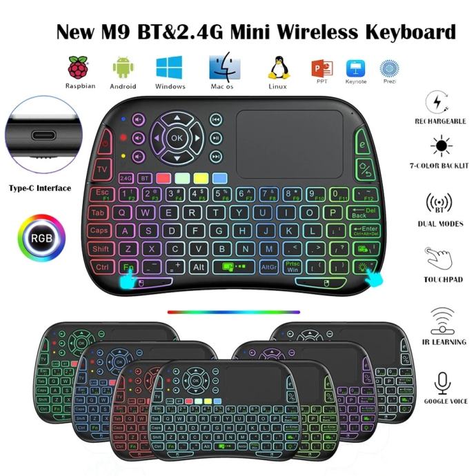 Mini bežična tipkovnica M9, povezivo wireless ili Bluetooth, radna udaljenost do 10m,