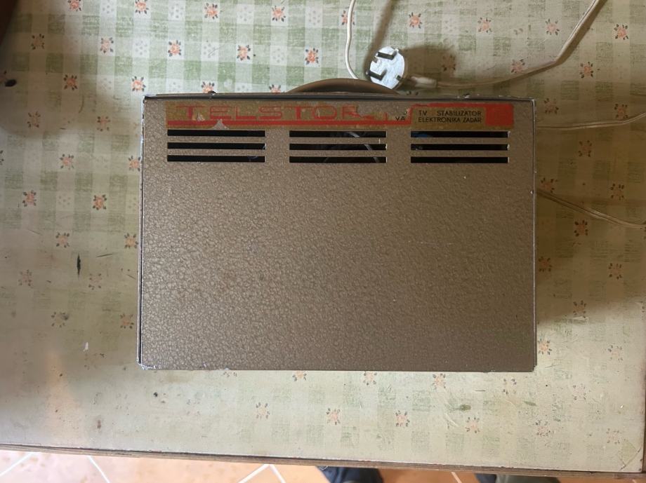 Prodajem TV stabilizator napona marke Telstor, proizvođača Elektronika Zadar. Radi se o starom jugoslavenskom uređaju koji je služio za stabilizaciju napona pri napajanju televizora. Kućište je metalno, smeđe boje, s ventilacijskim otvorima na gornjoj strani.