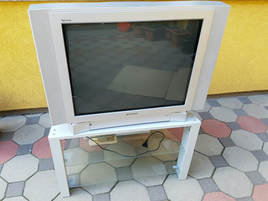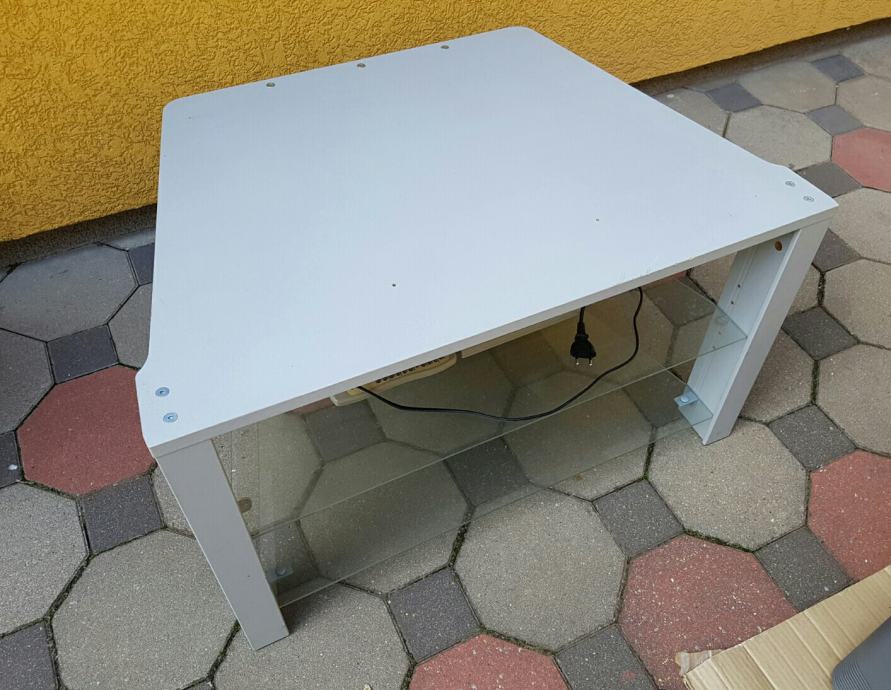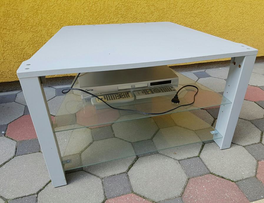 Stol - stalak za CRT ili LCD televizor sive boje s 2 staklene police za DVD player, kućno kino, DVB-T ili satelitski receiver..