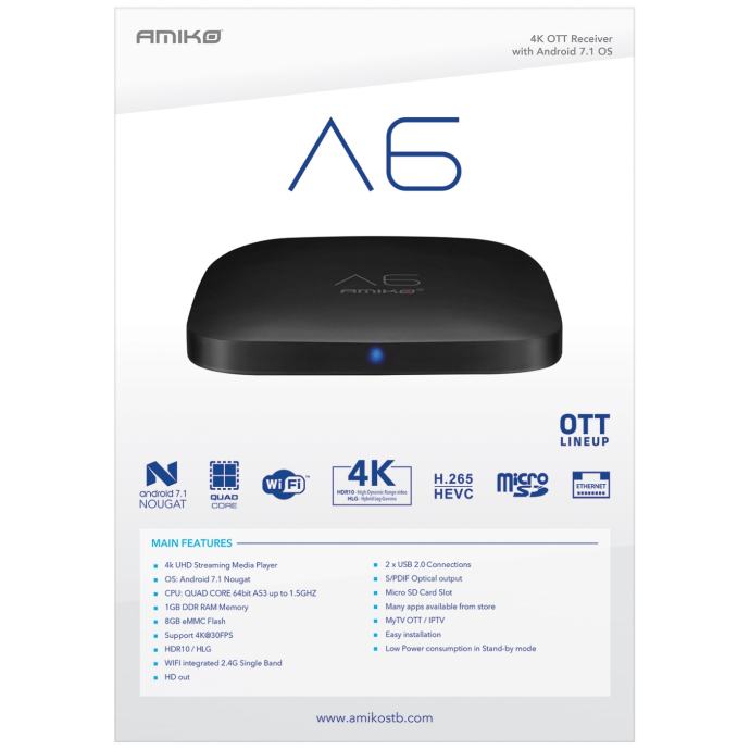 - Ugrađen WiFi 802.11 b / g / n, LAN 10/100, USB2.0, HDMI 2.0, S/PDIF, digitalni audio izlaz (optički), microSD slot.