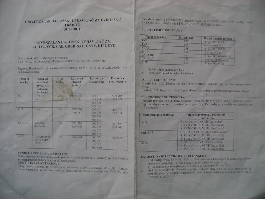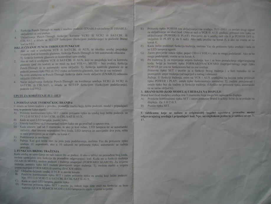 Univerzalni daljinski upravljač Tihao - E 10 in 1, sa priloženim uputama, kupljen nov i nikad nije korišten - stanje je vidljivo na slikama.