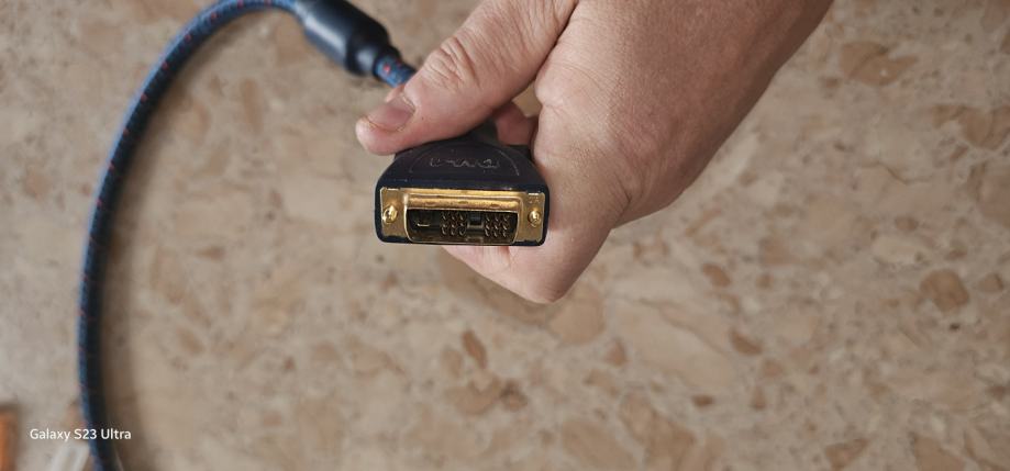 Visokokvalitetni Audioquest DVI video kabel (pozlaćeni konektori), dužine 1m...Kabel je zaštićen sa dva magneta i širokim višestrukim antimagnetnim pleterom. Rezultat takve zaštite je mnogo kvalitetnija slika.