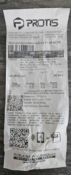 Xiaomi Mi TV Box S 2nd Gen – kao nov, garancija, račun, 4K HDR