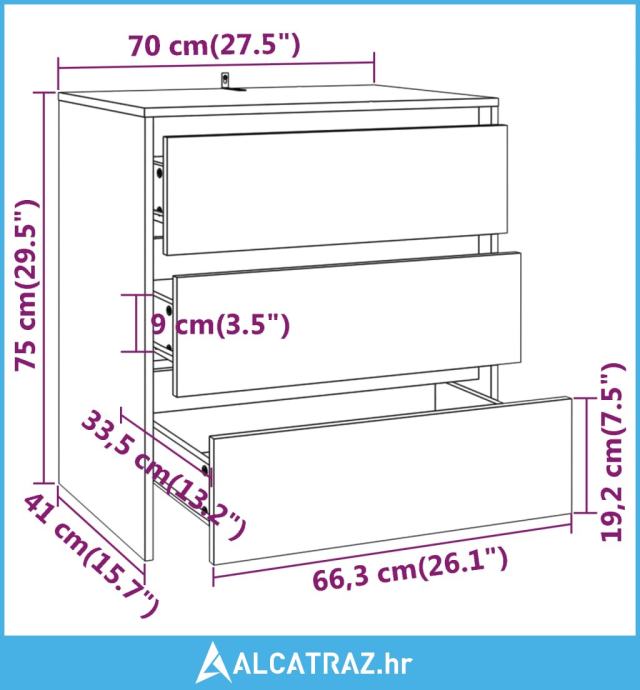 - Dimenzije komode s ladicama: 70 x 41 x 75 cm (Š x D x V)