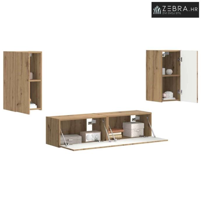 Ovaj set namještaja za dom i vrt nudi savršenu kombinaciju moderne funkcionalnosti i privlačnog izgleda. Idealan je za suvremene životne prostore, spajajući minimalistički dizajn s raznim praktičnim značajkama. Napravljen je da bude središnja točka u dnevnom boravku ili prostoru za zabavu; njegove elegantne linije i skladna forma čine ga odličnim izborom za sve koji cijene funkcionalnu eleganciju, nudi mjesto za pohranu i lijepu dekoraciju doma, dodajući vrijednost bilo kojem interijeru.