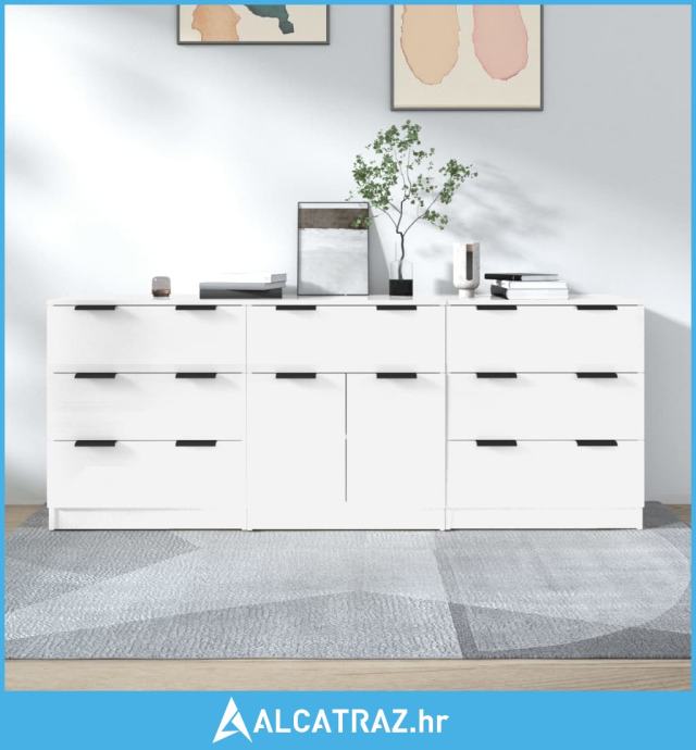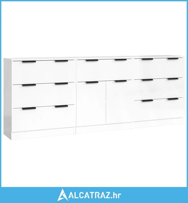 3-dijelna komoda visoki sjaj bijela od konstruiranog drva - NOVO