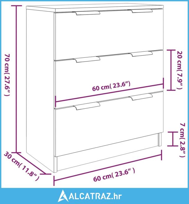 - Dimenzije (svake): 60 x 30 x 70 cm (Š x D x V)