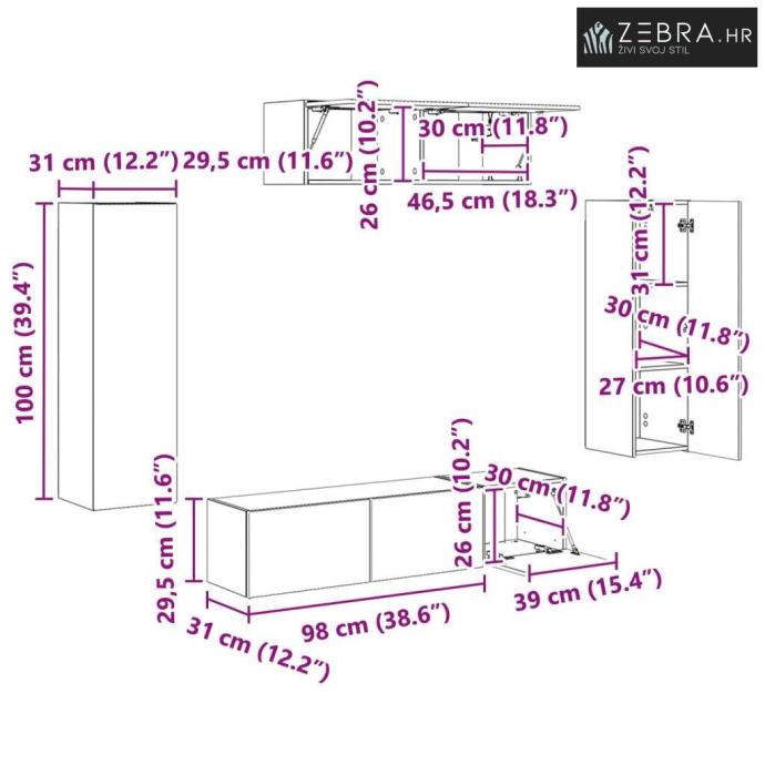 1 x Zidni ormar: 98 x 31 x 29.5 cm (DxŠxV)