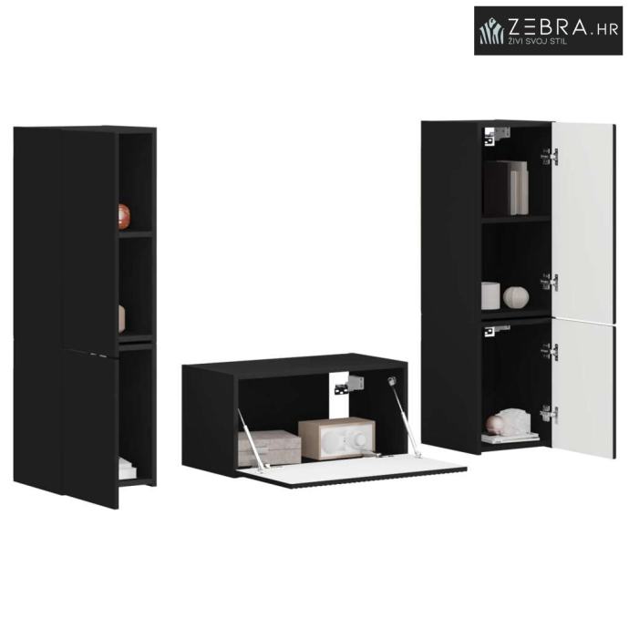 Višeslojno skladištenje: Ovaj set ima ladice i police koje nude odlične opcije za pohranu elektronike, knjiga ili dekorativnih predmeta. Klizna vrata omogućuju fleksibilno upravljanje prostorom, tako da možete prilagoditi prema različitim veličinama uređaja. Zatvoreni dijelovi održavaju vaš prostor čistim i urednim.