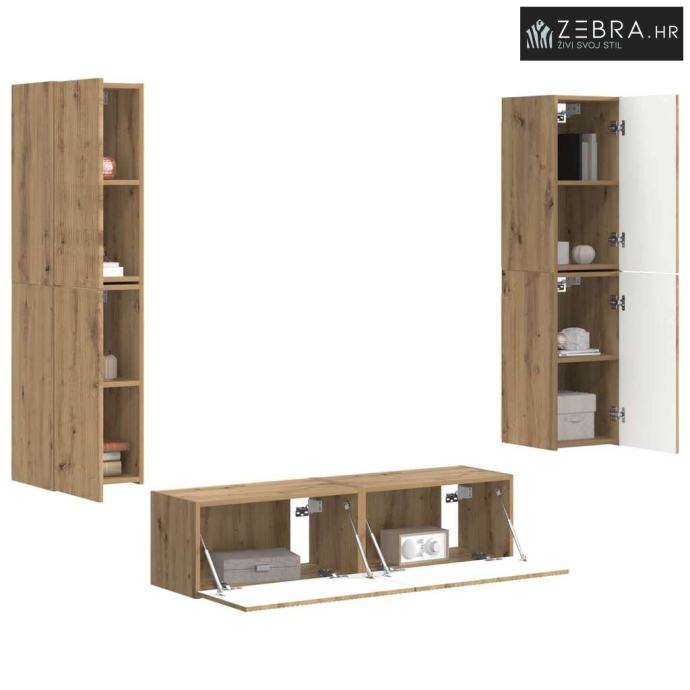 Ovaj set namještaja je svestran komad koji može svaku sobu pretvoriti u kombinaciju stila i funkcionalnosti. S modernim dizajnom koji se odlično uklapa u sve tipove interijera, bilo da su suvremeni ili tradicionalni, nudi ti bezbroj opcija za organizaciju prostora. Namijenjen je dugotrajnoj upotrebi i savršeno se uklapa u dnevne boravke i radne kutke, optimizirajući mjesto za pohranu i prikazivanje osobnog i dekorativnog.