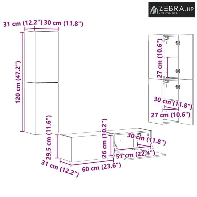 1 x Zidni ormarić: 60 x 31 x 29.5 cm (DxŠxV)