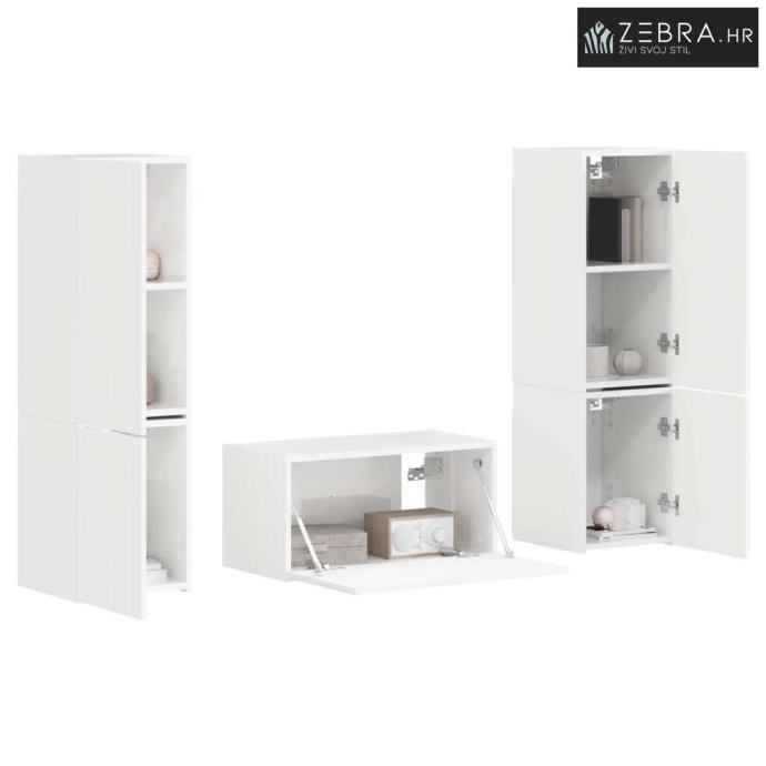 Višeslojno skladištenje: Ovaj set ima ladice i police koje nude odlične opcije za pohranu elektronike, knjiga ili dekorativnih predmeta. Klizna vrata omogućuju fleksibilno upravljanje prostorom, tako da možete prilagoditi prema različitim veličinama uređaja. Zatvoreni dijelovi održavaju vaš prostor čistim i urednim.