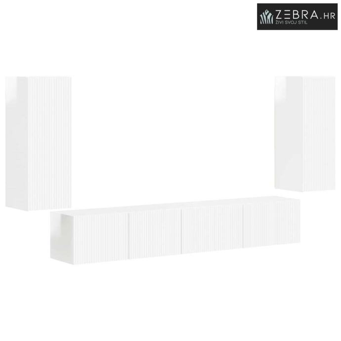 Predstavljamo ti stilsku i funkcionalnu garnituru namještaja koja savršeno spaja moderni dizajn i praktičnost. Ovaj centar za zabavu može se uklopiti u svaku modernu kuću ili ured. Njegova elegantna arhitektura i višenamjenske opcije su tu da poboljšaju svako životno okruženje, čineći ga središnjim mjestom za funkcionalnost i dekoraciju. Osmišljen s naglaskom na estetiku i korisnost, ovaj komad privlači pažnju svojim minimalističkim šarmom i učinkovito organizira prostor.