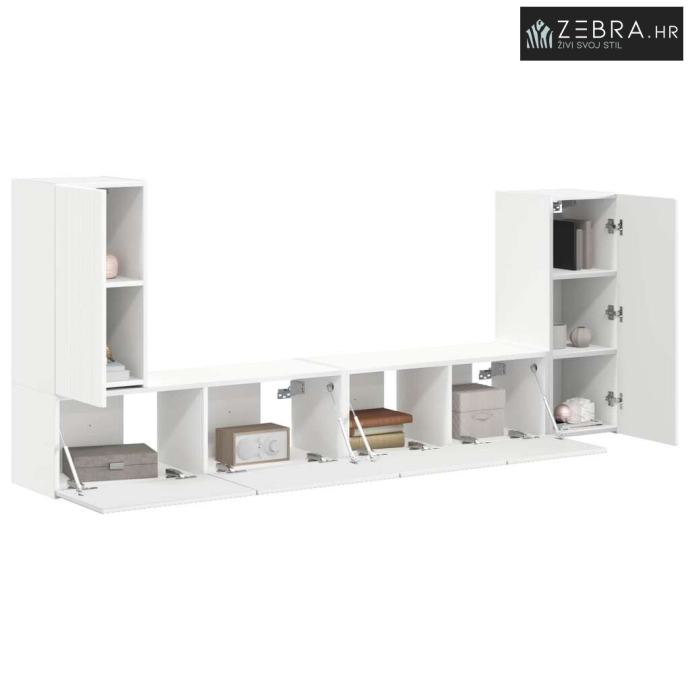 Multifunkcionalni dizajn: Opremljen podesivim policama i raznim opcijama pohrane, ovaj set brzo se prilagođava različitim potrebama. Bez obzira na to trebate li prostor za medije, knjige ili ukrase, svaki dio je osmišljen za poboljšanje funkcionalnosti bez žrtvovanja stila. Njegov spojni dizajn osigurava da sve, od konzola do okvira s fotkama, pronađe svoje mjesto.