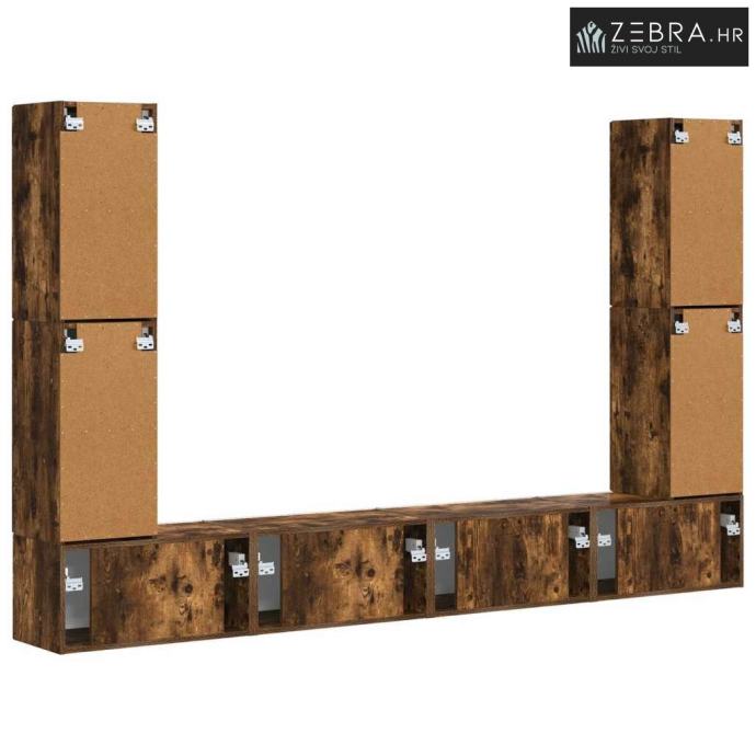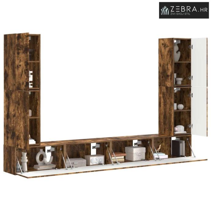 Komponente i pohrana: Ovaj set namještaja dolazi s raznim pretincima, ladicama i kliznim vratima, nudeći puno prostora za elektroniku, medijske dodatke i dekoracije. Dizajniran je s praktičnošću na umu, omogućujući lako pristupanje i organizaciju, držeći nered daleko od očiju, ali uvijek nadohvat ruke.
