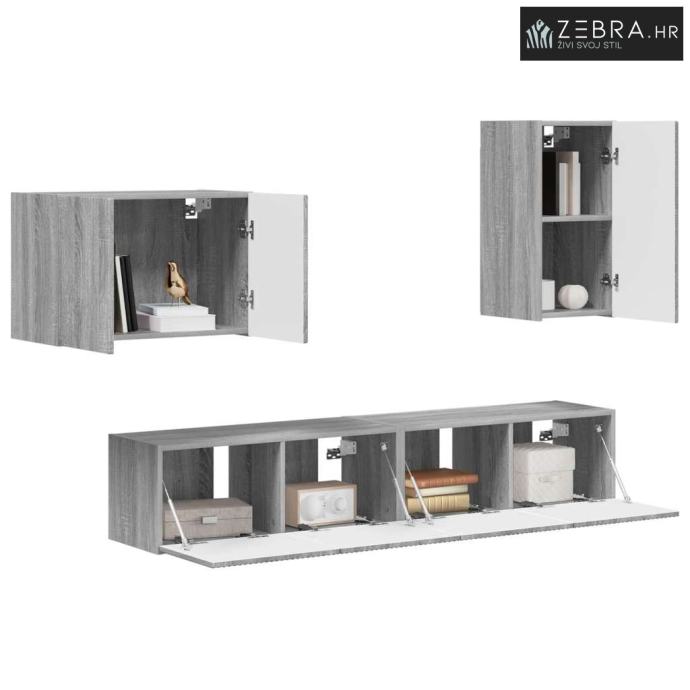 Prilagodljive značajke: Set ima prilagodljive police i fleksibilna rješenja za pohranu. Ove korisnički prijateljske značajke omogućuju personaliziranu organizaciju, čineći ga pogodnim za razne primjene, od pohrane medija do prikazivanja dekorativnih predmeta.