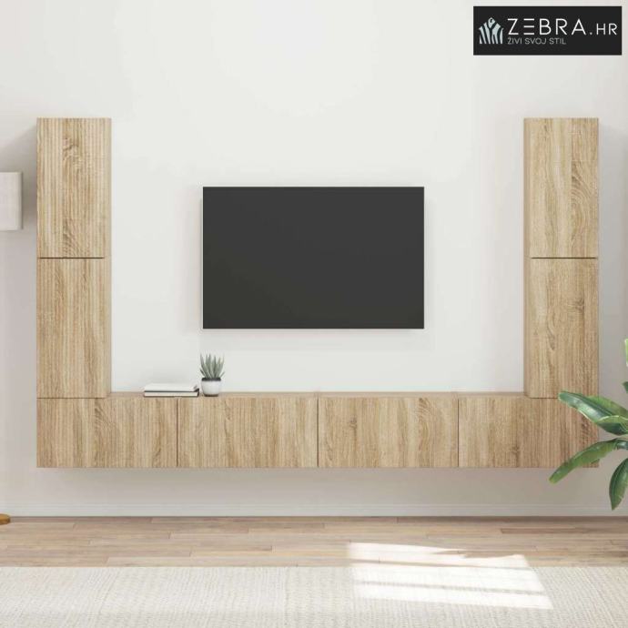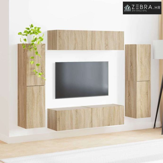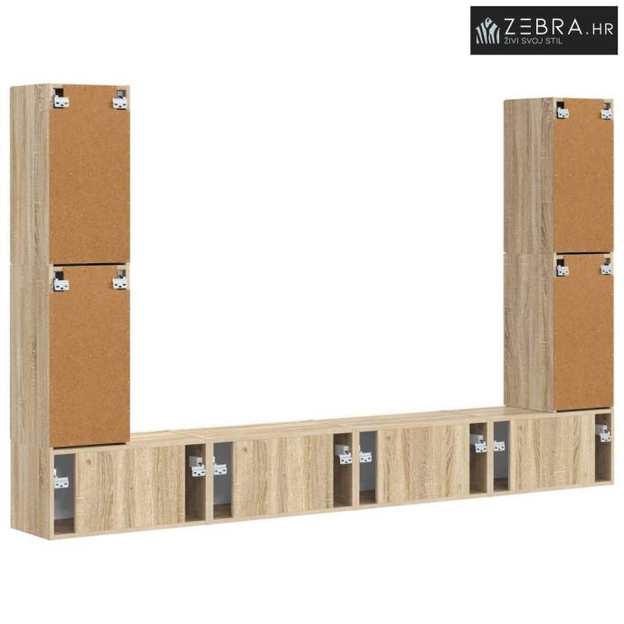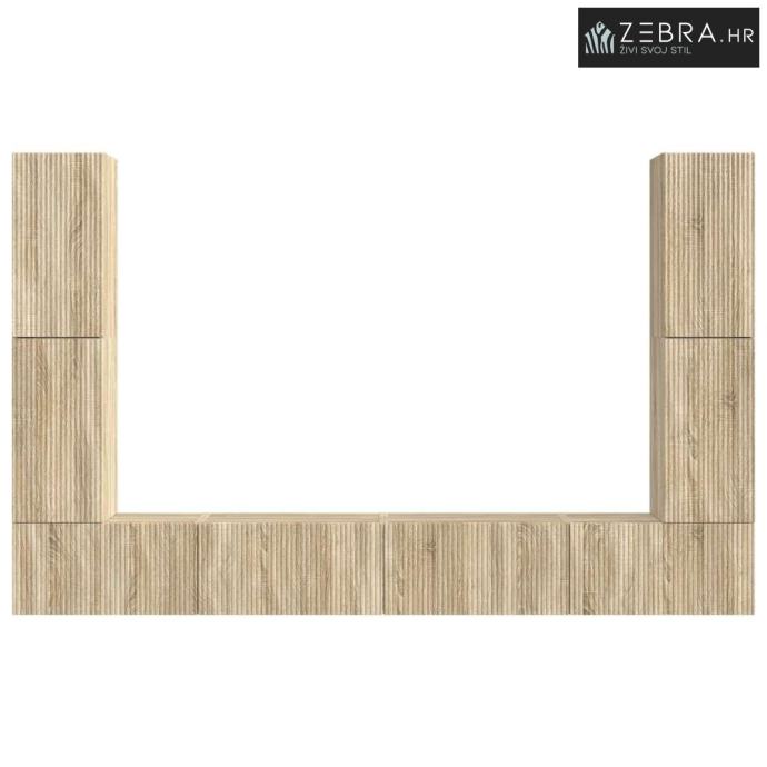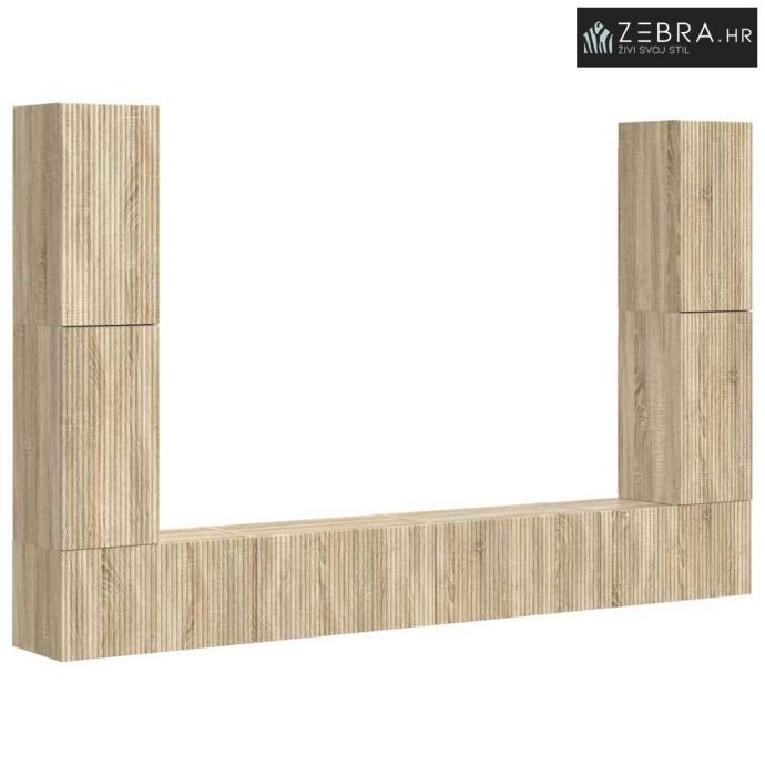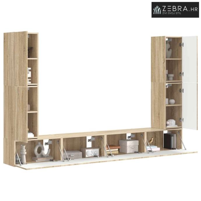 Komponente i pohrana: Ovaj set namještaja dolazi s raznim pretincima, ladicama i kliznim vratima, nudeći puno prostora za elektroniku, medijske dodatke i dekoracije. Dizajniran je s praktičnošću na umu, omogućujući lako pristupanje i organizaciju, držeći nered daleko od očiju, ali uvijek nadohvat ruke.