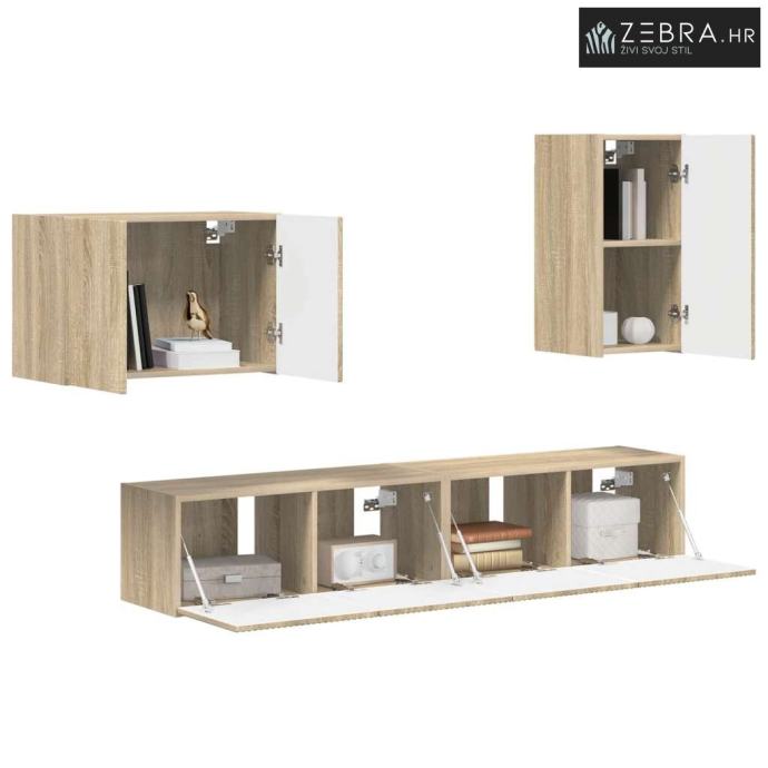 Prilagodljive značajke: Set ima prilagodljive police i fleksibilna rješenja za pohranu. Ove korisnički prijateljske značajke omogućuju personaliziranu organizaciju, čineći ga pogodnim za razne primjene, od pohrane medija do prikazivanja dekorativnih predmeta.