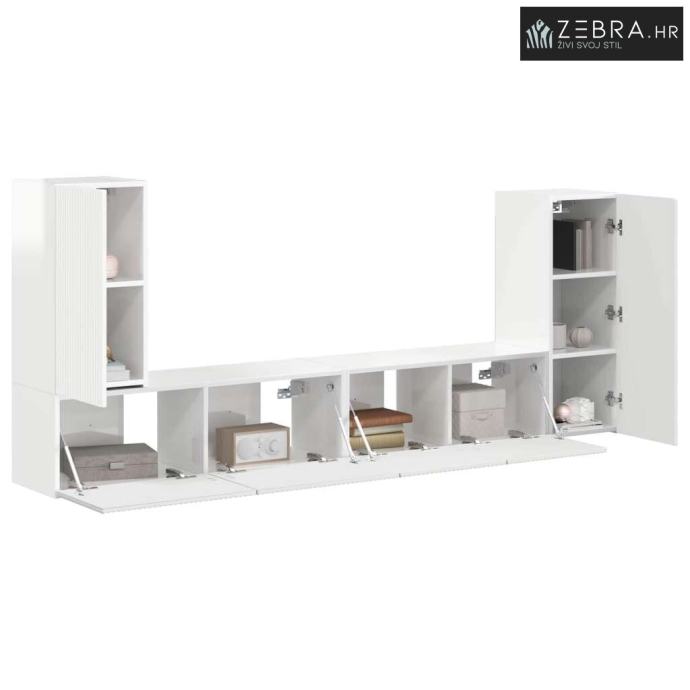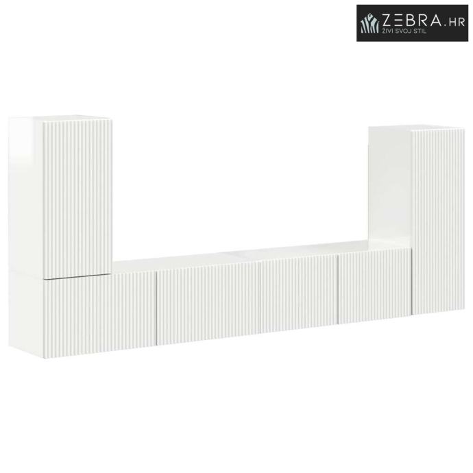 Multifunkcionalni dizajn: Opremljen podesivim policama i raznim opcijama pohrane, ovaj set brzo se prilagođava različitim potrebama. Bez obzira na to trebate li prostor za medije, knjige ili ukrase, svaki dio je osmišljen za poboljšanje funkcionalnosti bez žrtvovanja stila. Njegov spojni dizajn osigurava da sve, od konzola do okvira s fotkama, pronađe svoje mjesto.