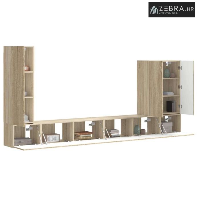Ovaj multifunkcionalni namještaj za zabavu savršeno se uklapa u razne kućne prostore, pružajući i funkcionalnost i stil. Dizajniran je za efikasno organiziranje i izlaganje audio-vizualne opreme, a njegovi dijelovi pokrivaju razne potrebe za pohranom i rasporedom. Ima modernu i čistu estetiku, koja stvara privlačan izgled dok maksimizira korisnost.