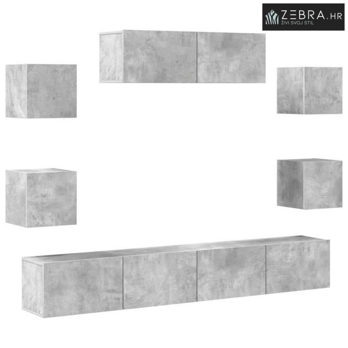 7-dijelni set TV ormarića siva boja betona konstruirano drvo - Beton s