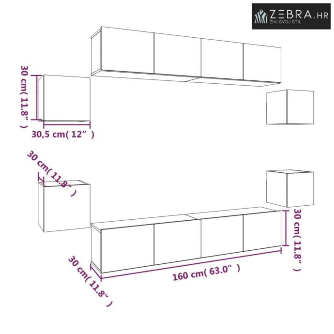 4 x TV ormarić: 30,5 x 30 x 30 cm (Š x D x V)