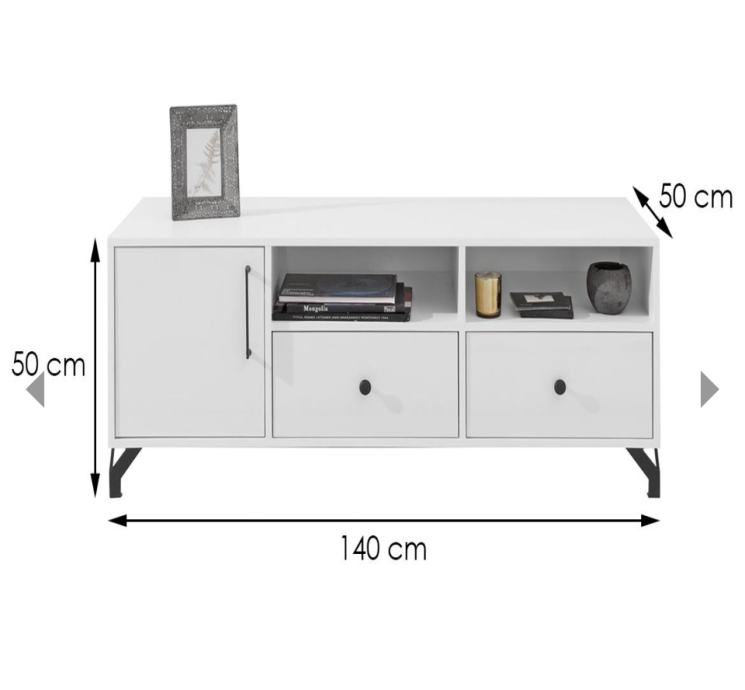 Bergen TV stalak 1 vrata + 2 ladice + 2 otvora 140x50x50 cm bijeli