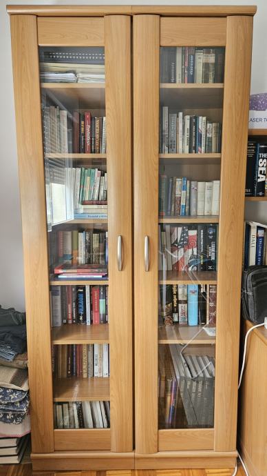 Biblioteka se sastoji od dva uska ormara, svaki dimenzije 50×38×210. Moze i pojedinacna prodaja.