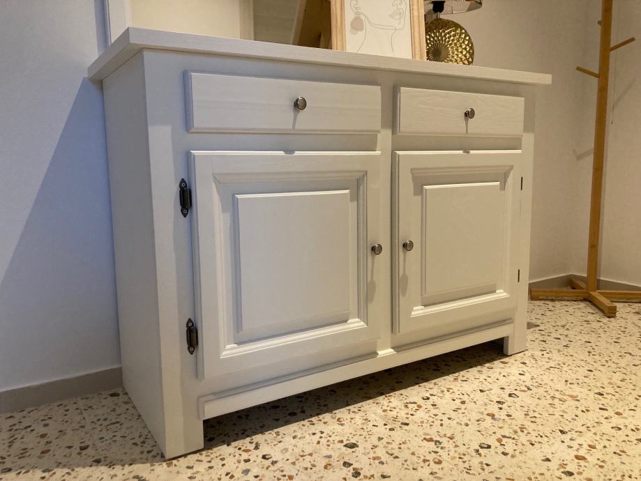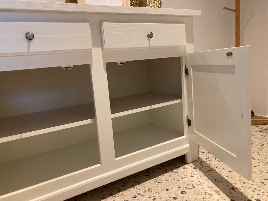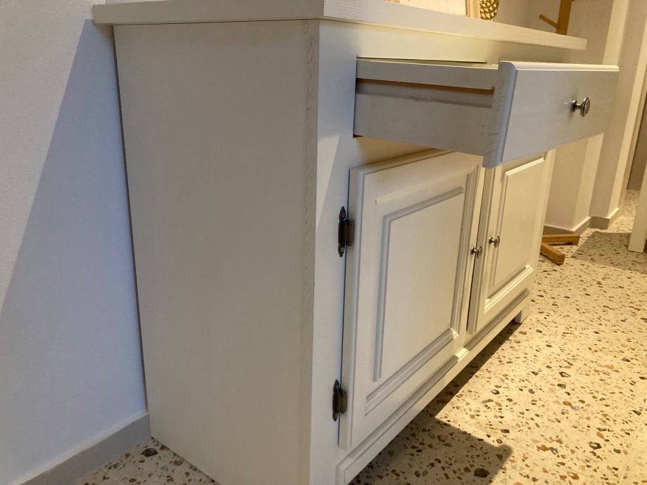 Prodajem komodu od punog drveta, hrasta, farbana u bijelu boju. Nova, nekorištena, prodaje se zbog prenamene stana. Stanje perfektno. Komoda je napravljena iz jednog dijela.
